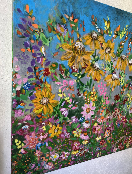 Fairytale Garden This vibrant composition brings the magic and beauty of the "Fairy Tale Garden" right into your home. This painting is a dynamic blend of realistic and abstract elements, creating a dreamy and fantastical atmosphere. Each flower on the canvas is crafted with love and care, capturin...